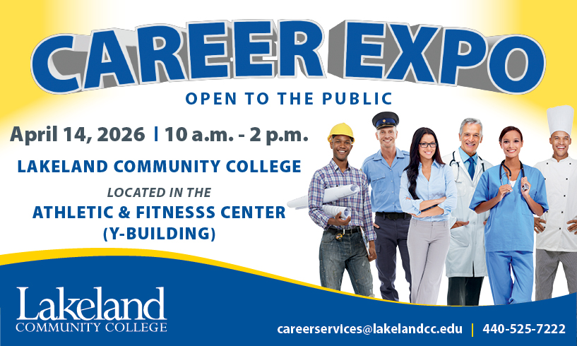 Lakeland Community College will host a Career Expo from 10 a.m. to 2 p.m. on Tuesday, April 14, 2026, in the Athletic and Fitness Center (AFC) of the Y-Building. Admission to the event is free and open to the public.